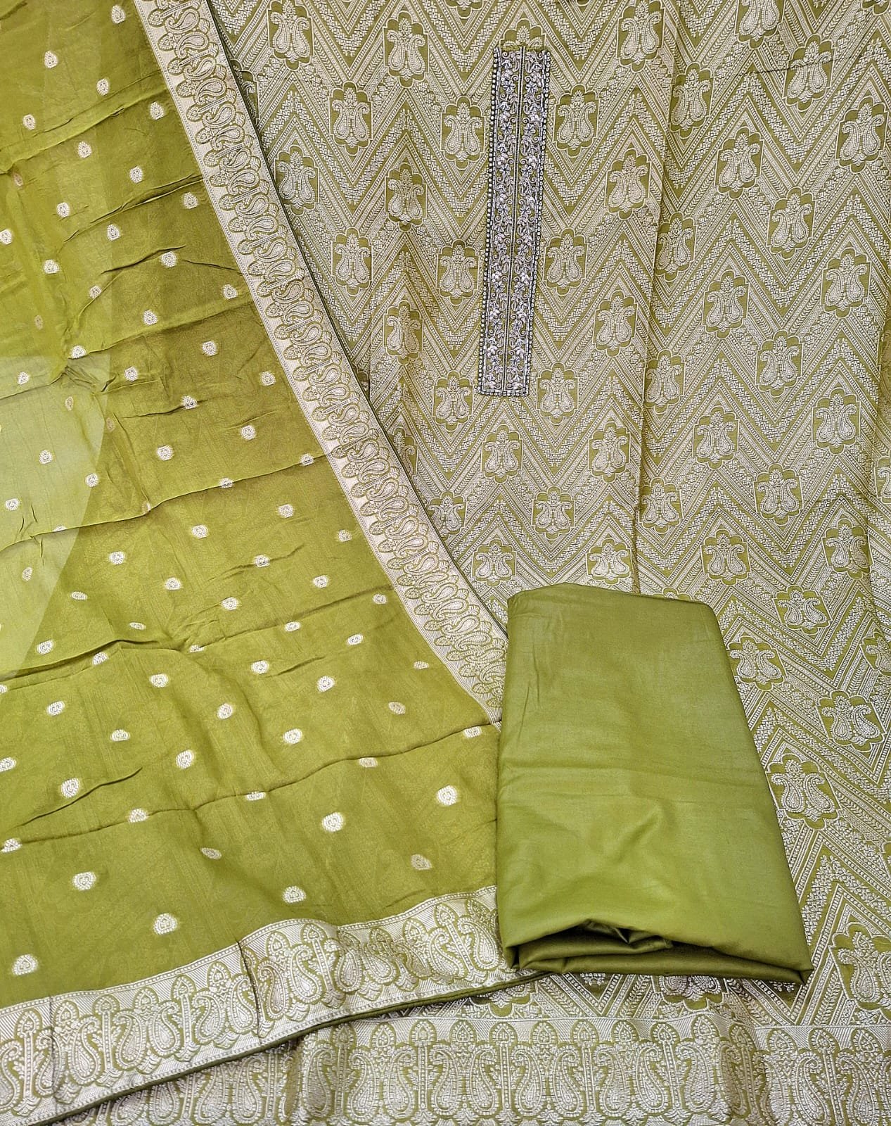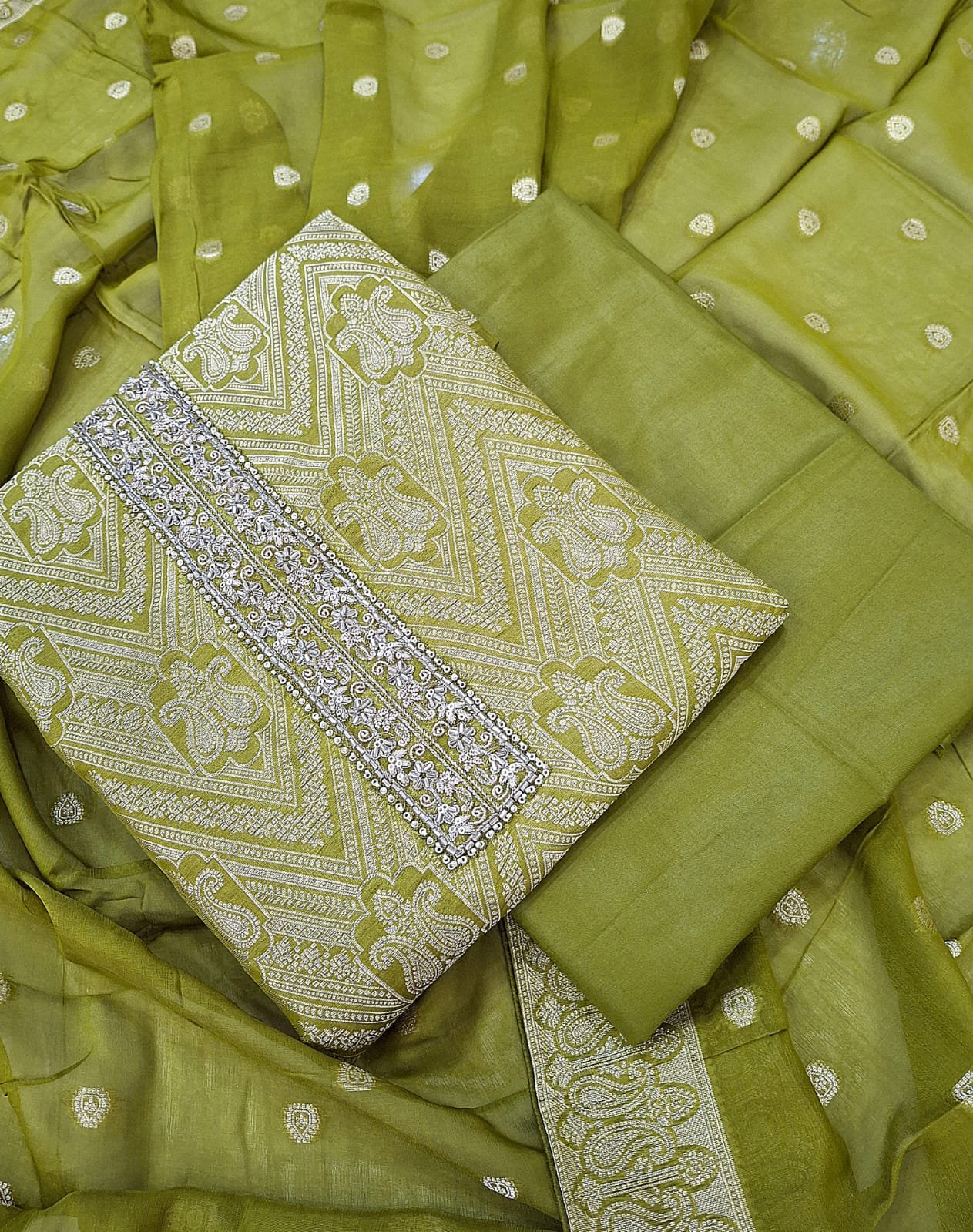 Banarasi silk full banarasi weaving neck hand work suit with banarasi silk dupatta and plane bottom.