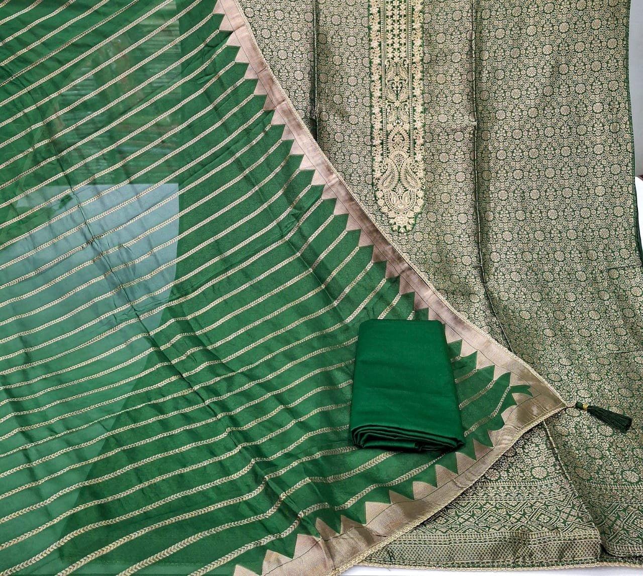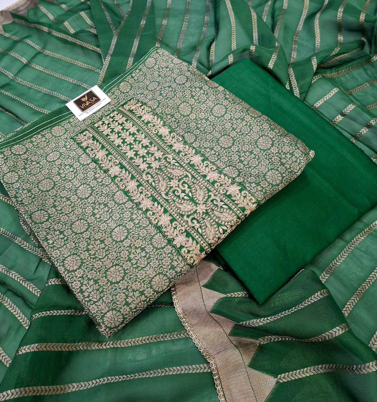 Banarasi silk fabric full suit banarasi weaving design with plane bottom and banarasi silk dupatta.