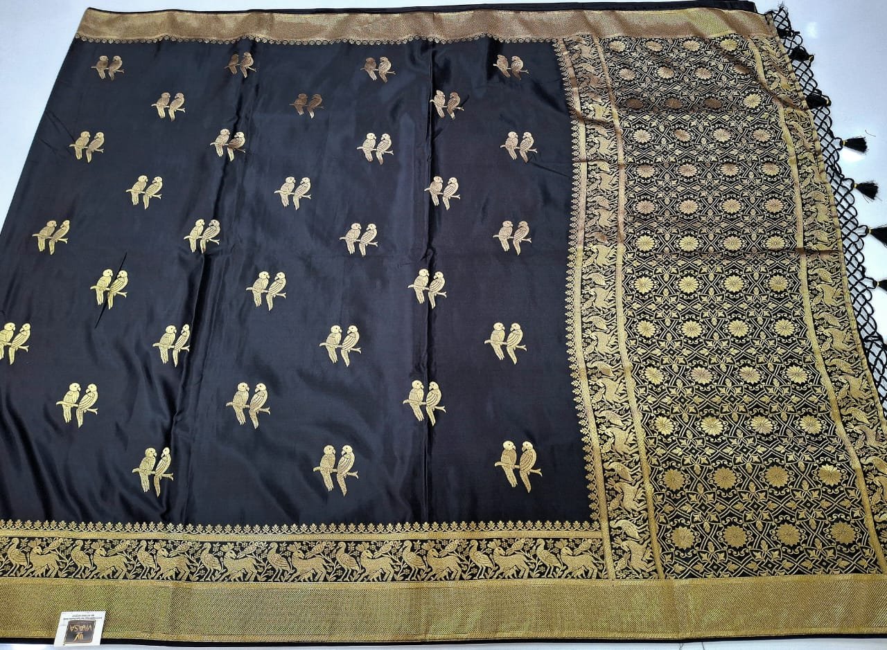 Bangalore silk fabric ivory and designer weaving pattern saree with rich pallu and jacquard designer blouse.