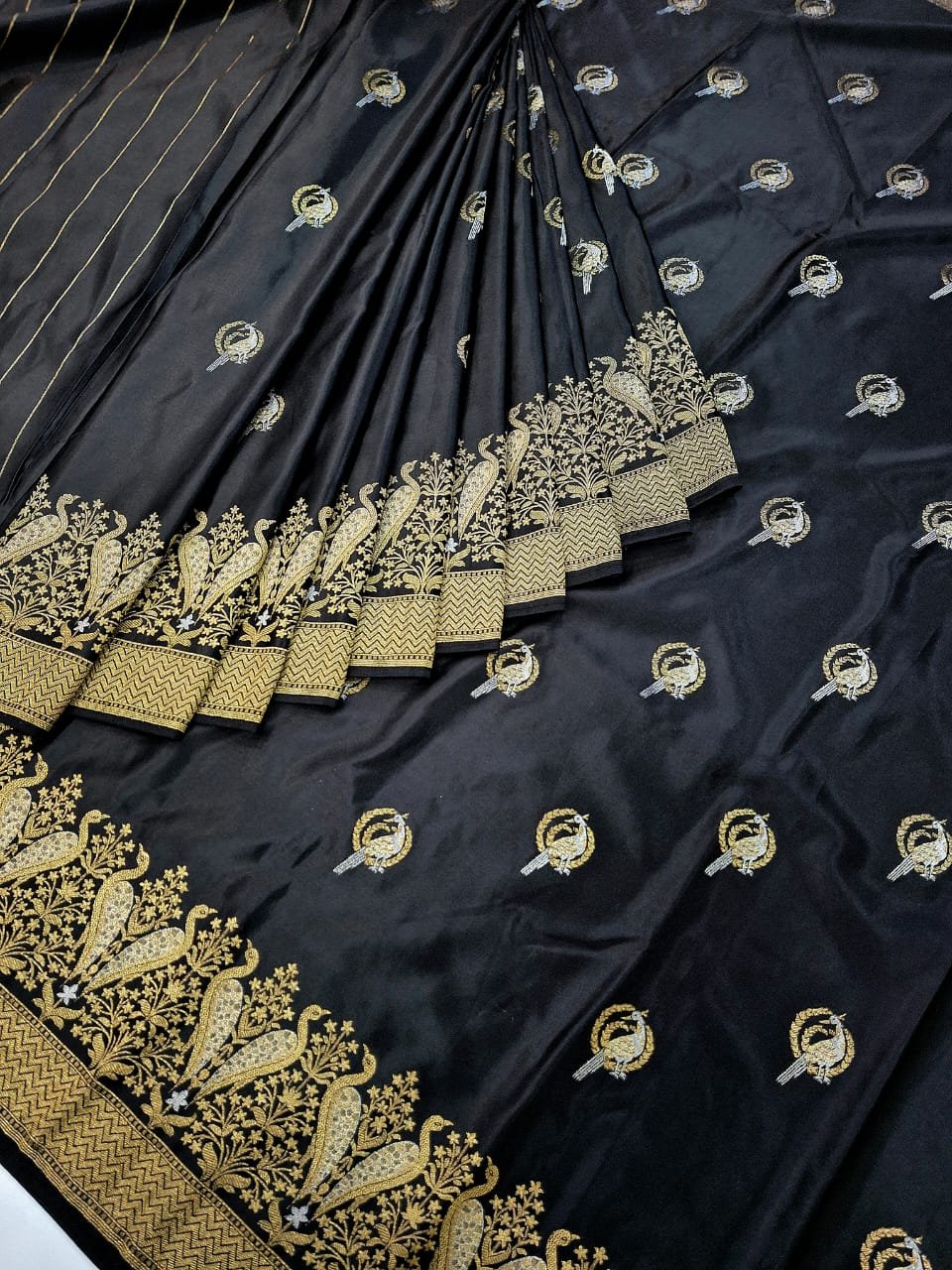 Bangalore silk fabric ivory and designer weaving pattern saree with rich pallu and jacquard designer blouse.