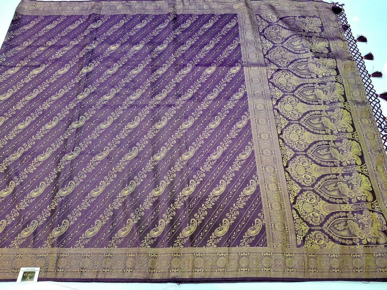 Bangalore Silk fabric designer weaving pattern saree with rich pallu and rich blouse.