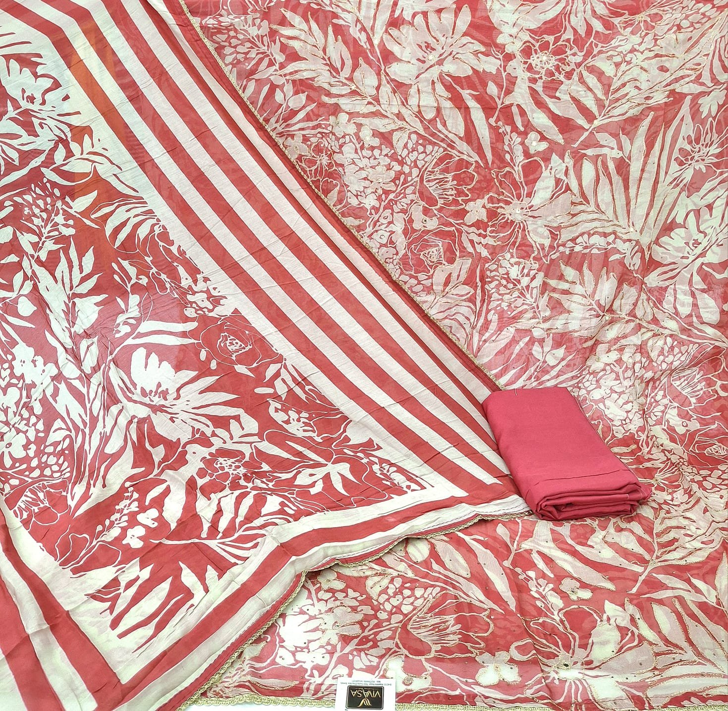 Burberry fabric 3D print with thread embroidery work suit with lace work design with plane bottom and designer printed dupatta.