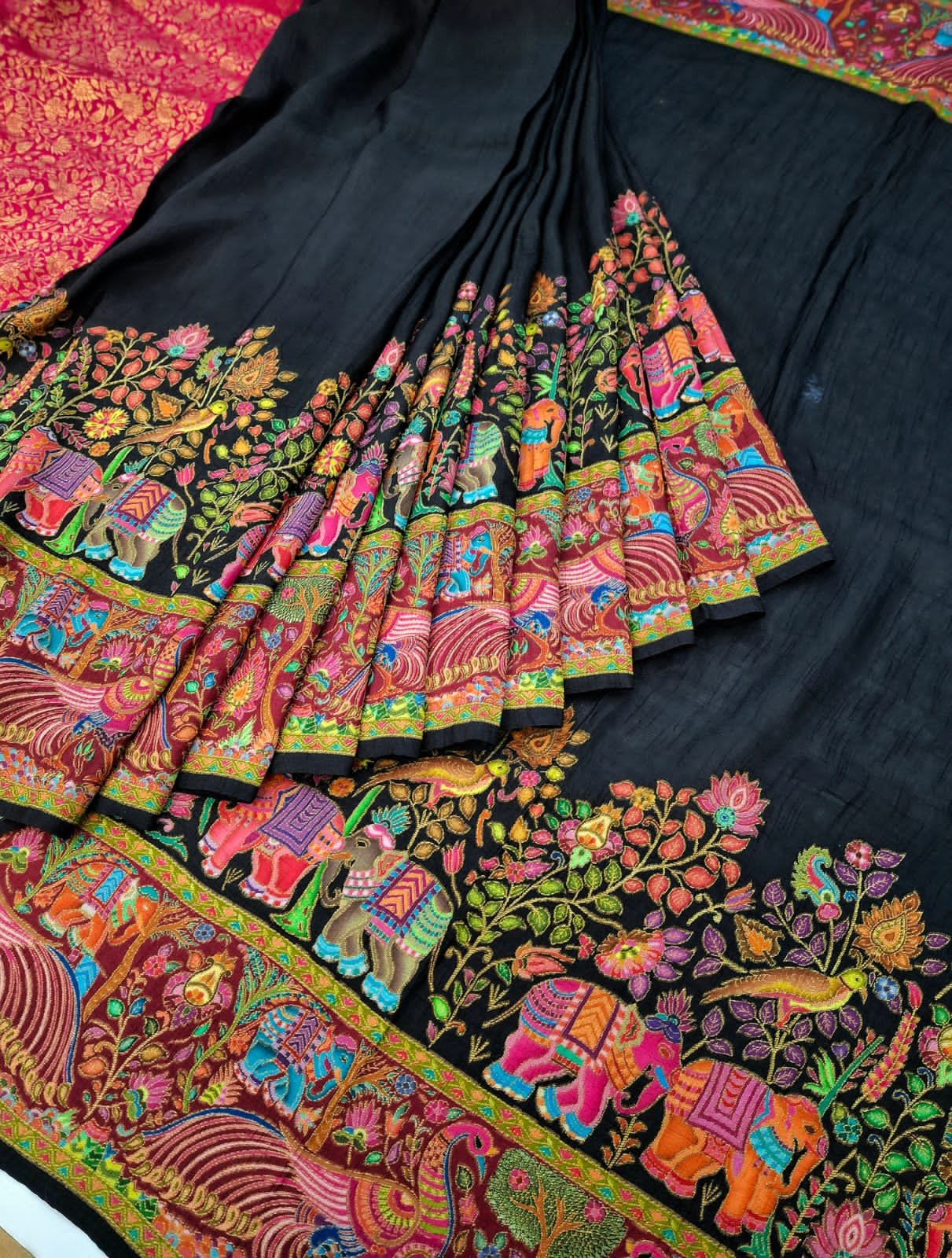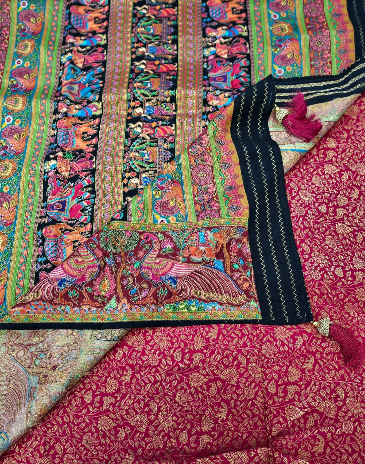 Pure Coimbatore silk multicolour pure resham weaving designer saree with rich border design and plane concept with multicolour resham weaving on pallu and contrast pure silk blouse.