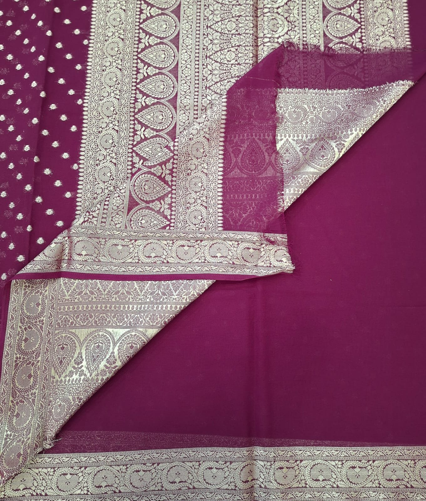 Georgette fabric weaving design banarasi look saree with rich pallu.