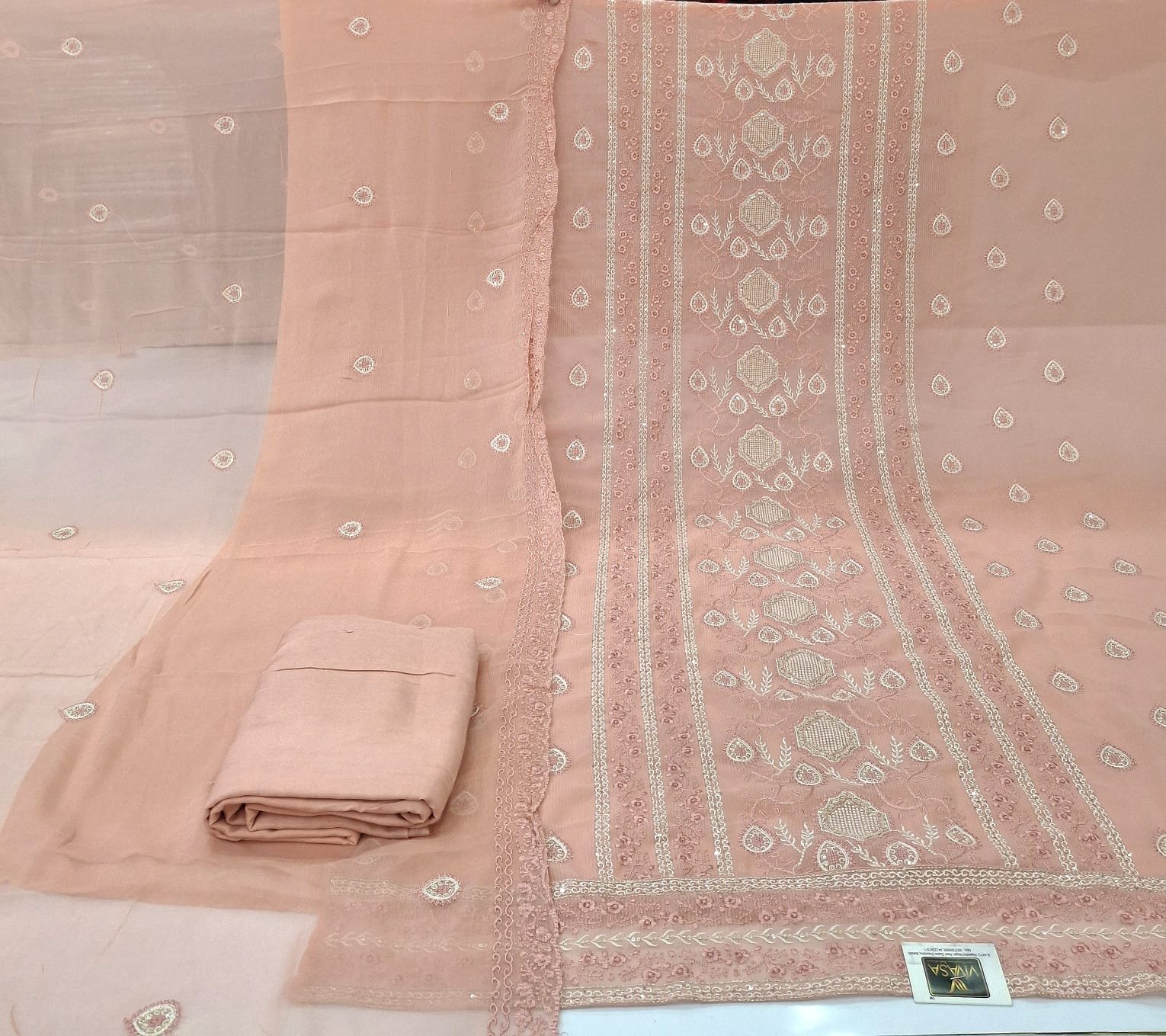 Pure georgette full lucknawi work designer suit with georgette dupatta and plane bottom.