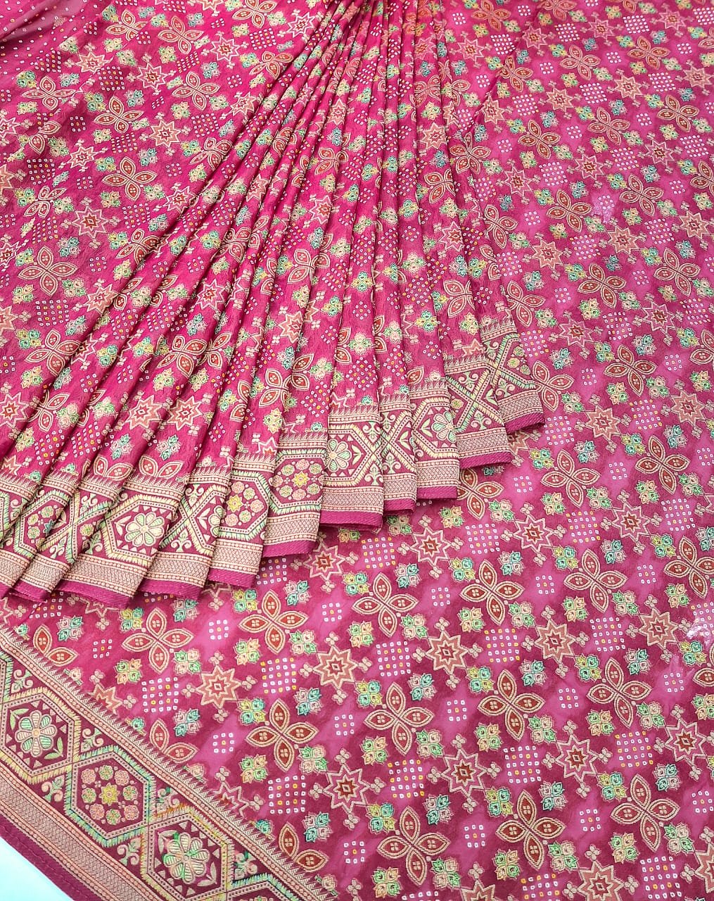 Pure khaddi georgette ghaat chola weaving and resham weaving saree with rich pallu.