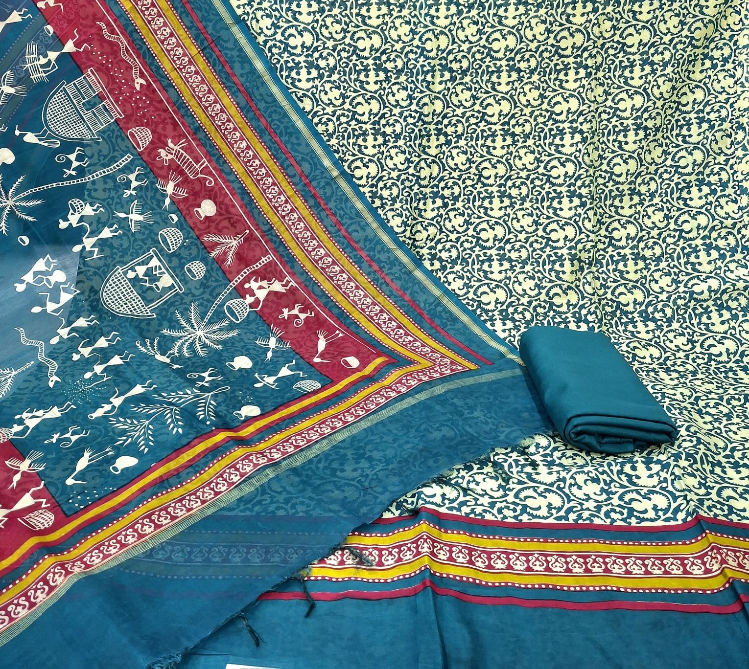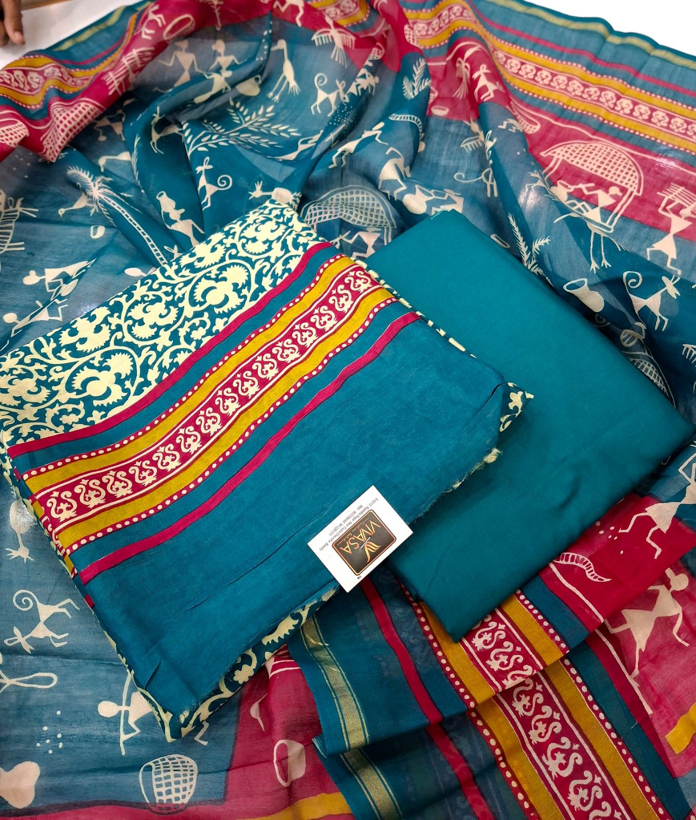 Maheshwari Silk fabric designer printed concept sober suit with maheshwari silk dupatta and cotton bottom.