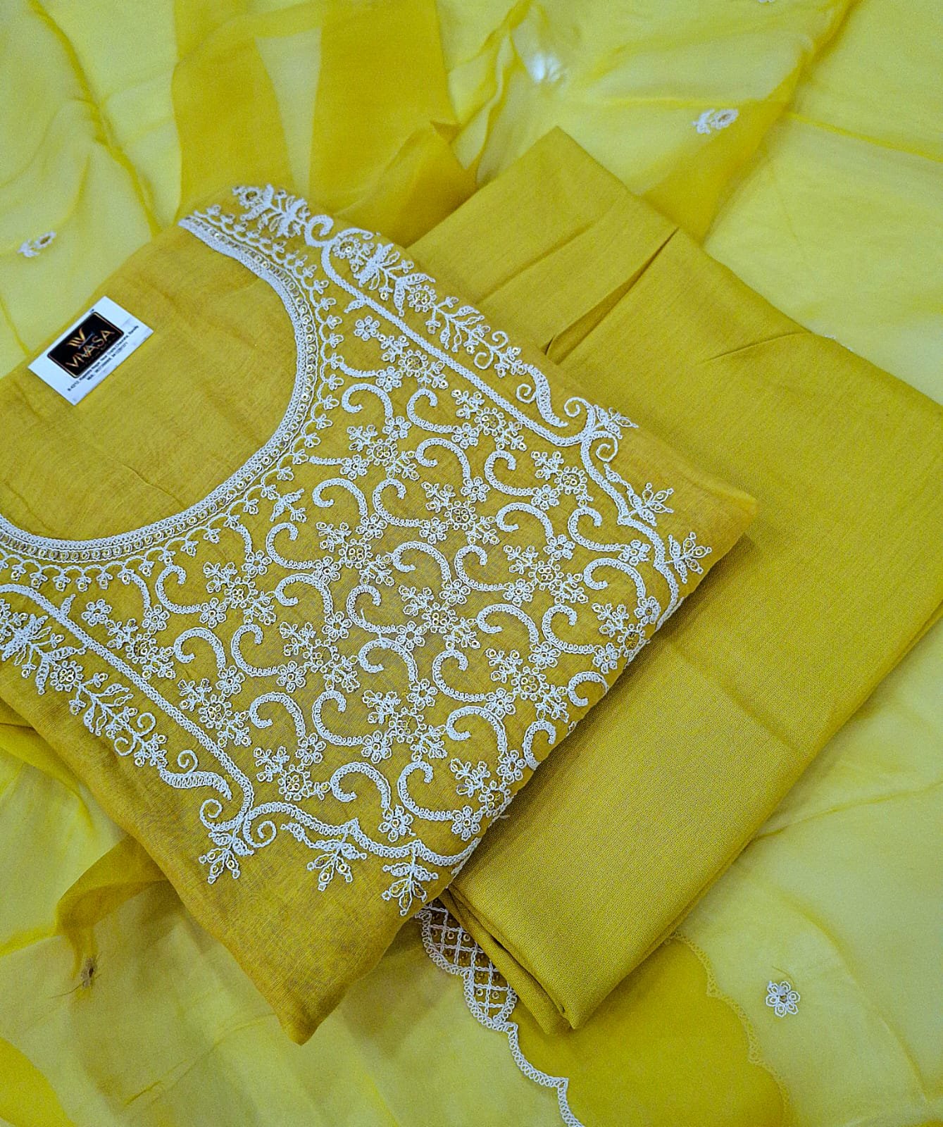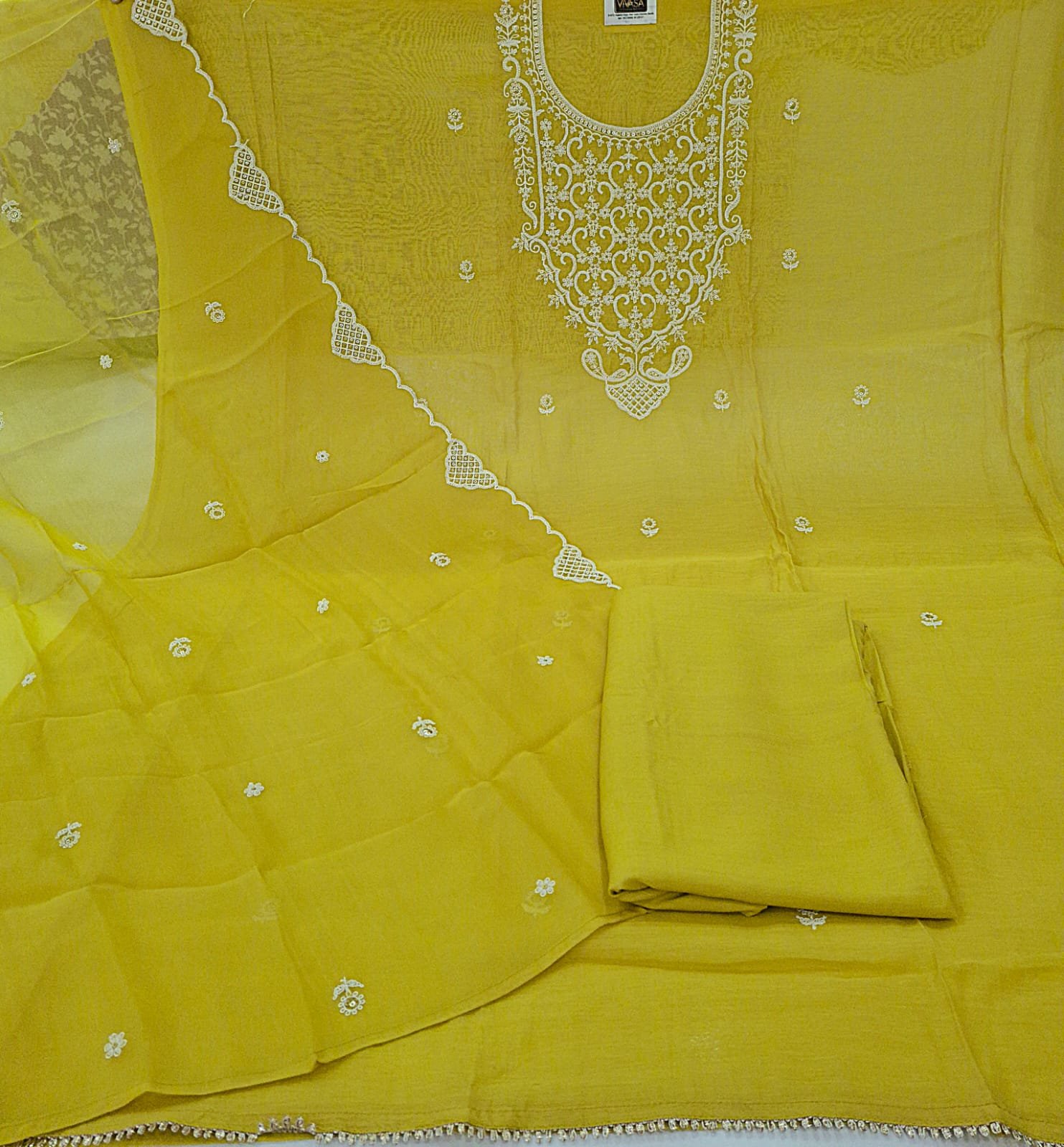 Mal cotton thread embroidery wok designer suit with mal cotton dupatta and plane bottom.