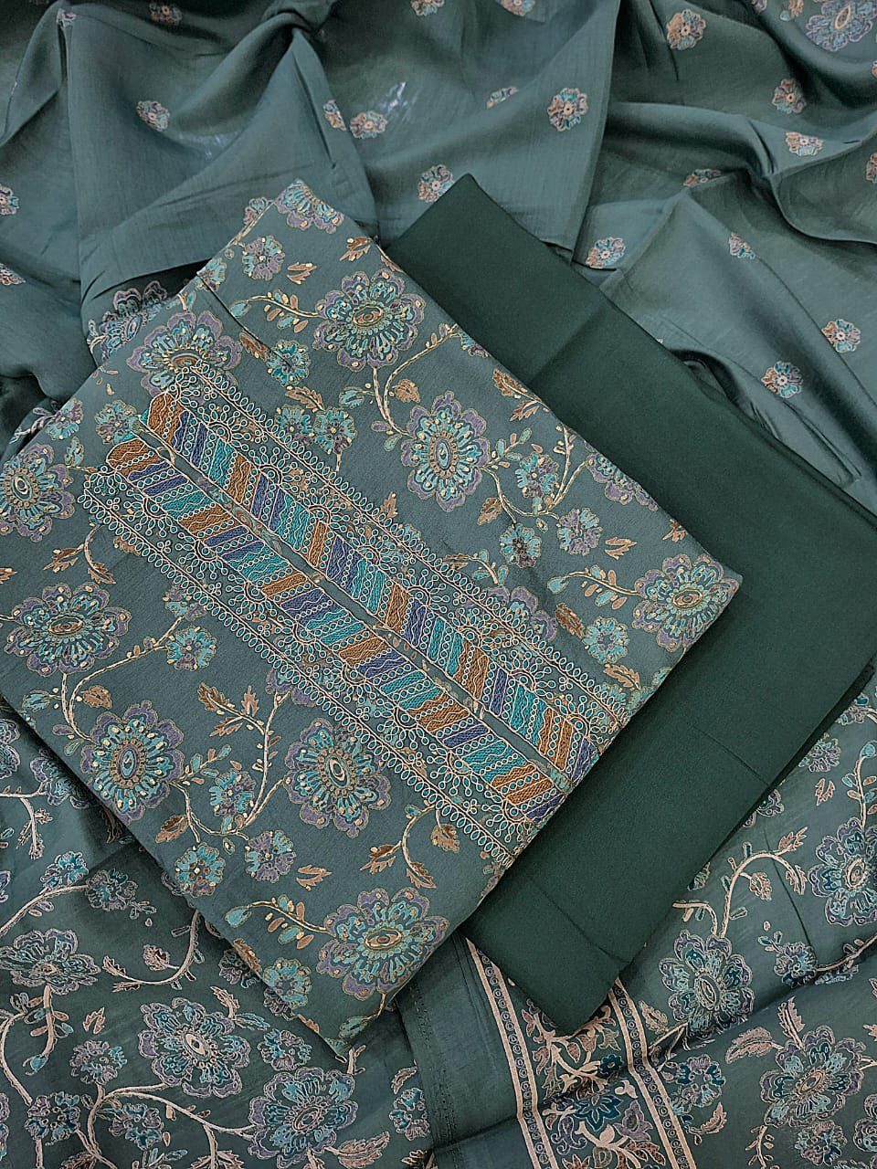 Muslin printed suit with plane bottom and printed muslin dupatta.
