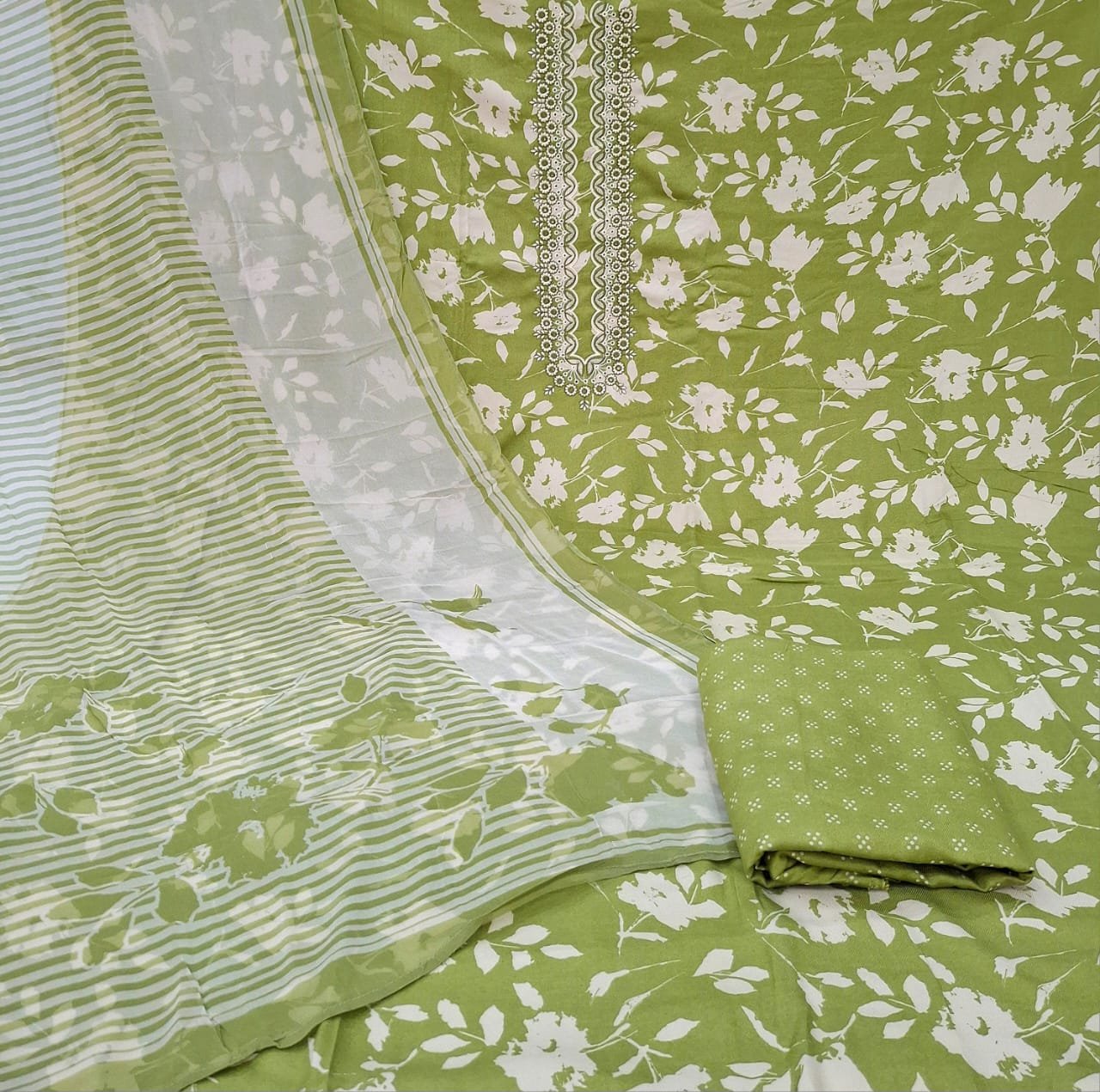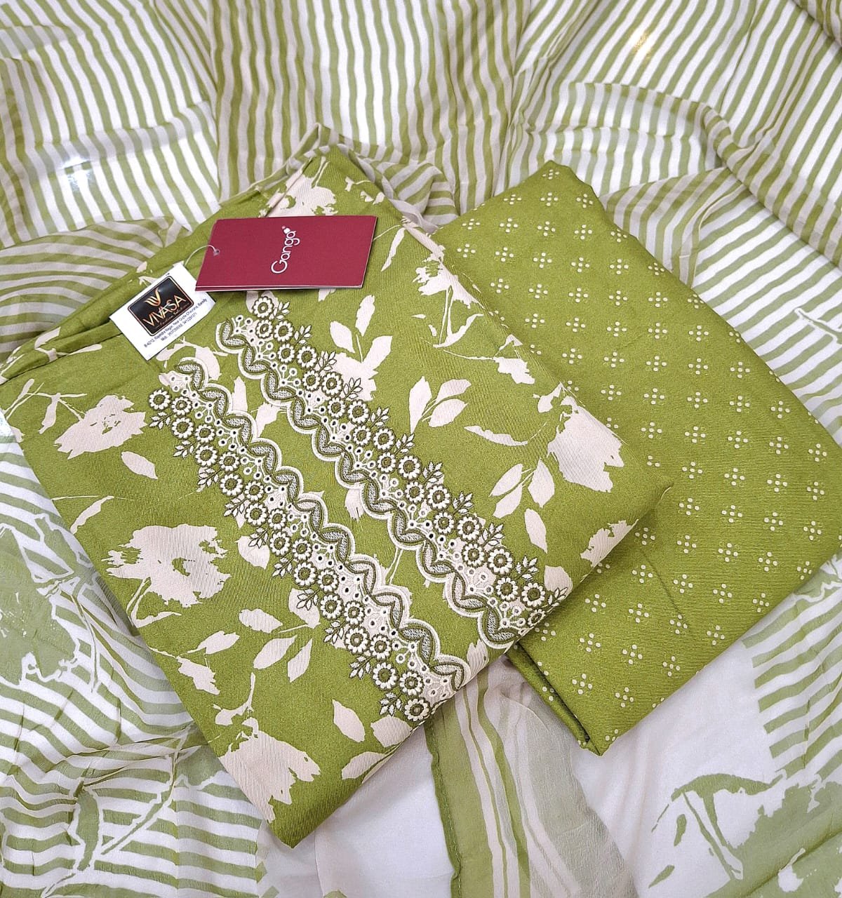 Pashmeena Woollen printed with thread embroidery design suit with woollen bottom and pure chiffon dupatta.