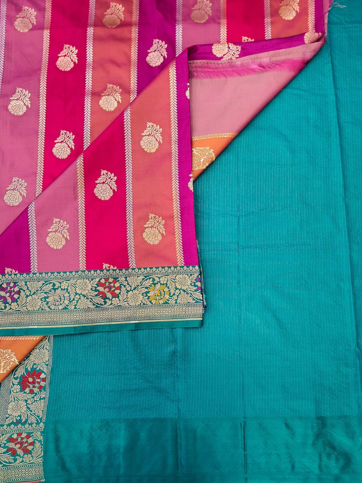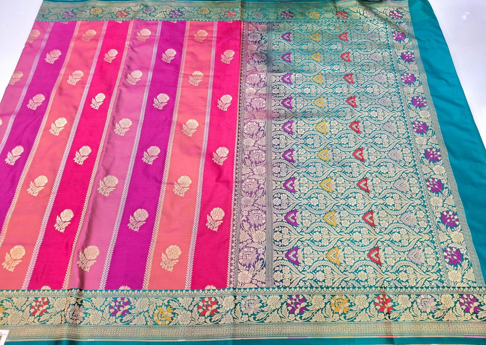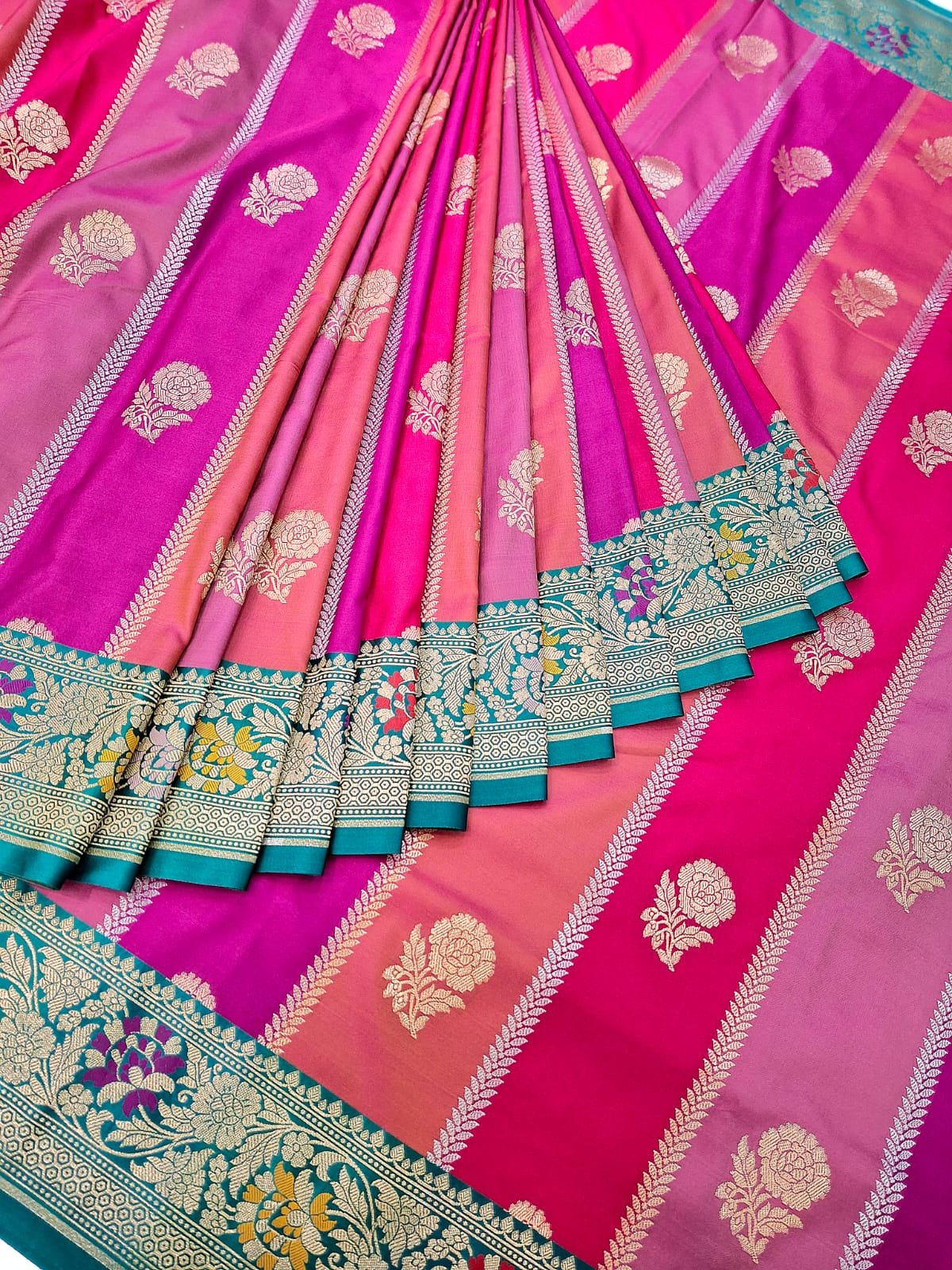 Pure banarasi silk fabric designer meena resham weaving saree with exclusive rich pallu and rich border.