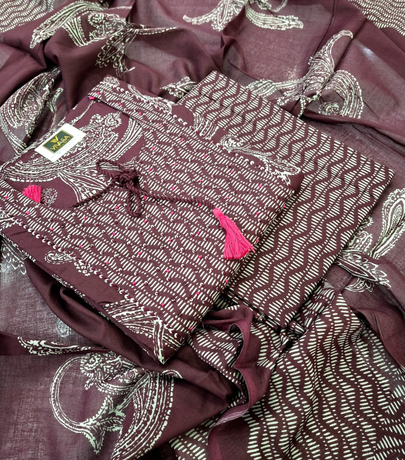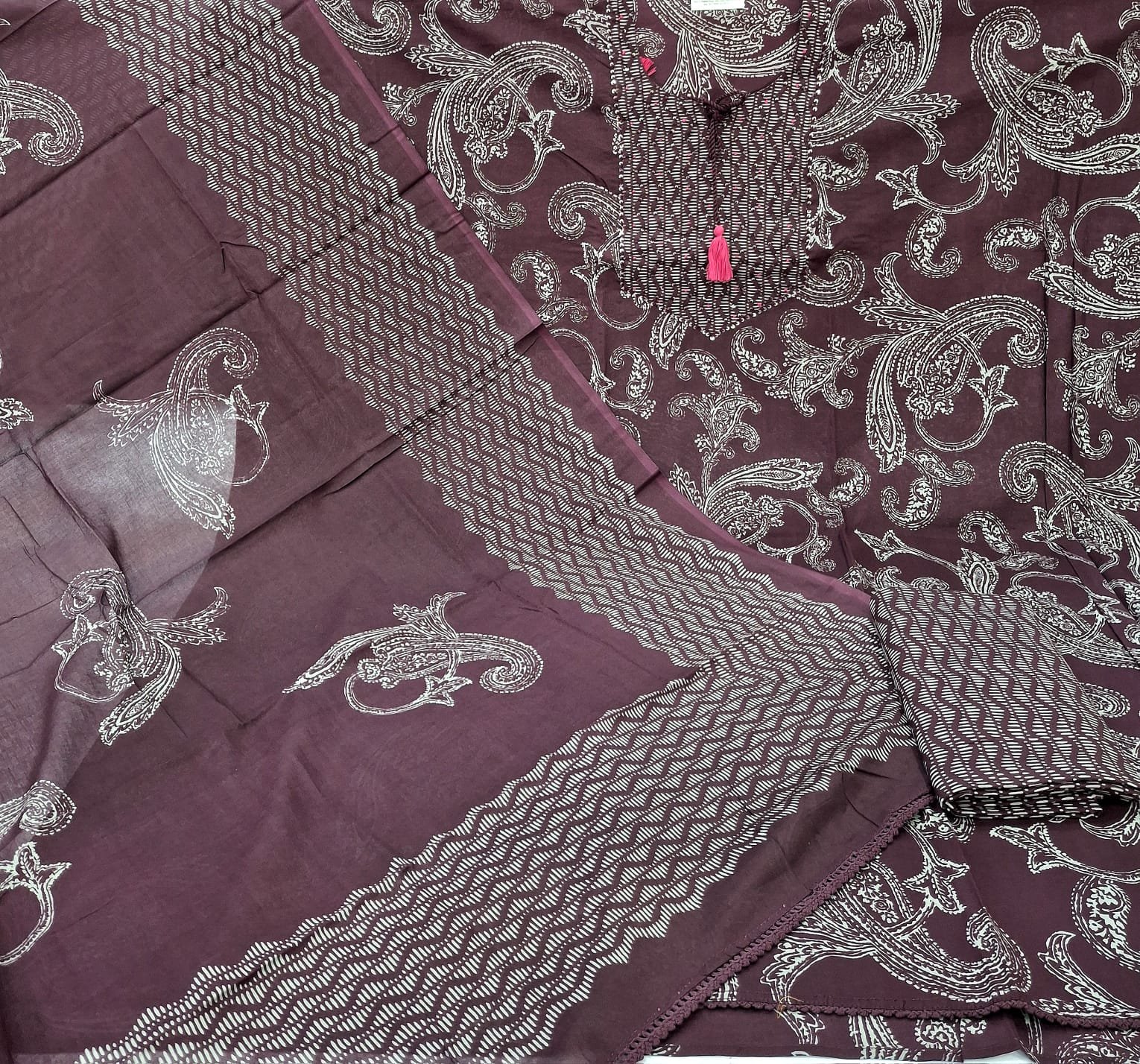 Pure cotton angrakha style neck printed suit with printed cotton bottom and cotton dupatta..