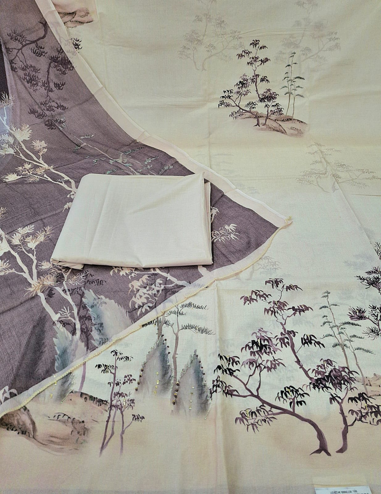 Pure cotton digital print suit with printed contrast chiffon dupatta and cotton bottom.