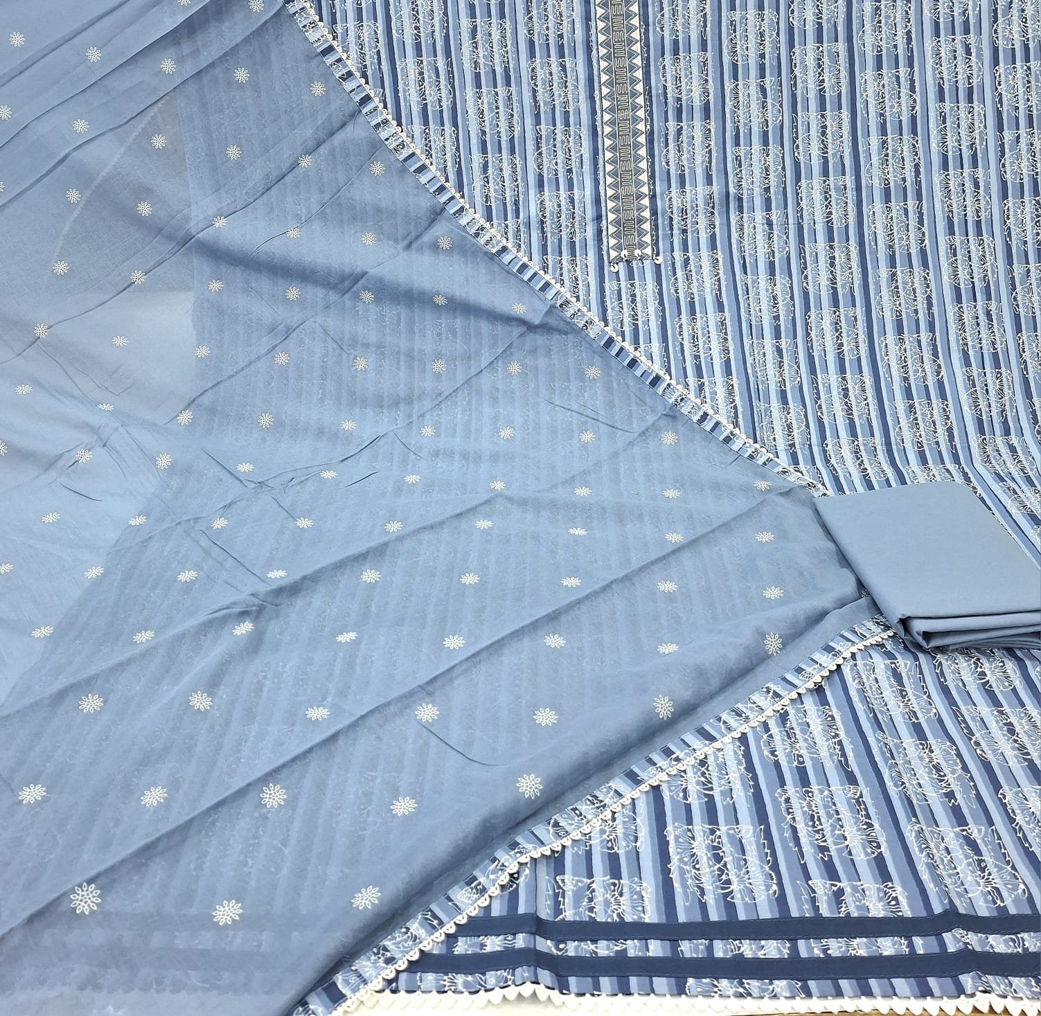 Pure premium cotton digital printed suit with cotton bottom and fancy dupatta.