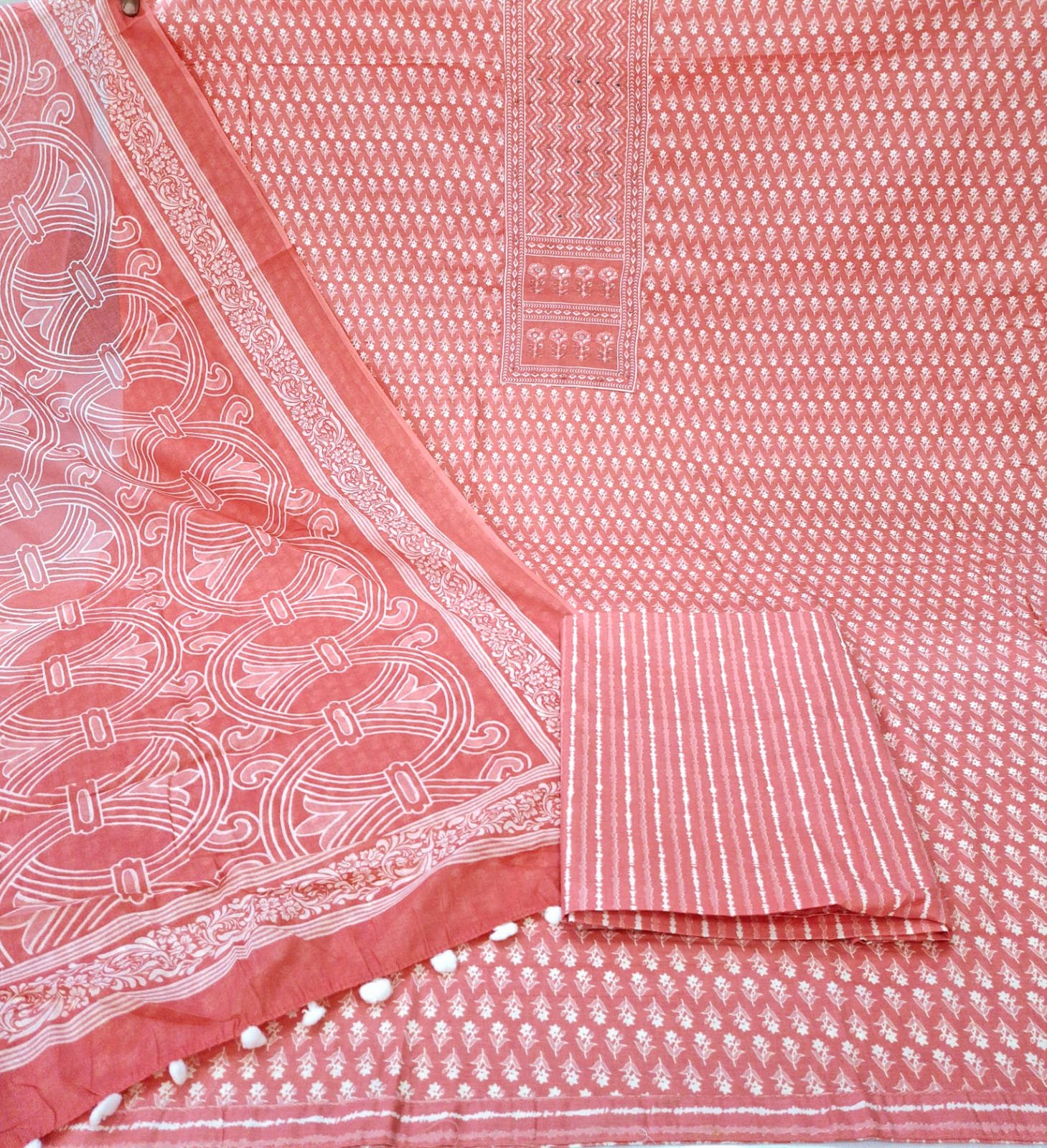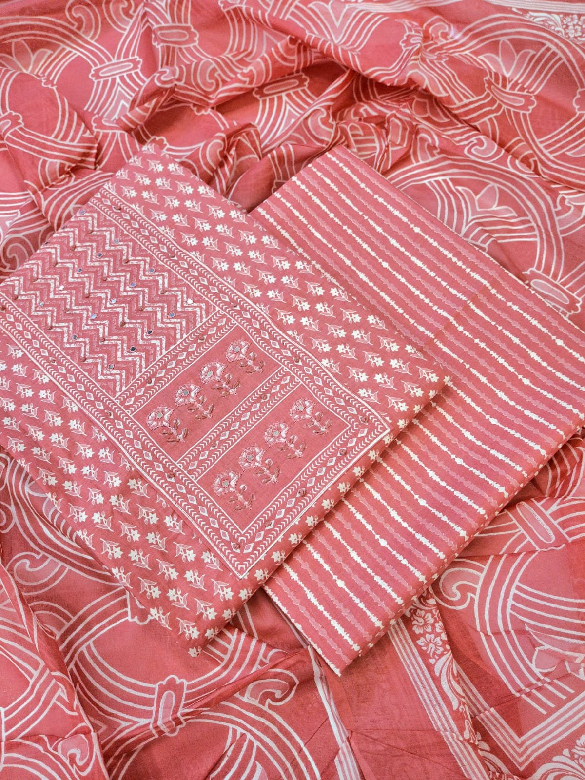 Pure cotton digital print suit with cotton dupatta and printed cotton bottom.