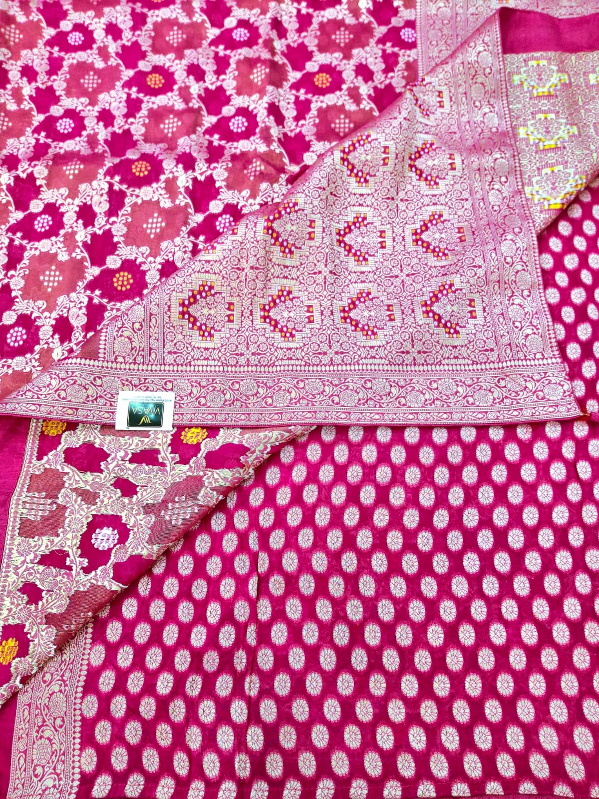 Pure Silk fabric khaddi weaving + bandhej weaving work saree with rich pallu and rich silk blouse.