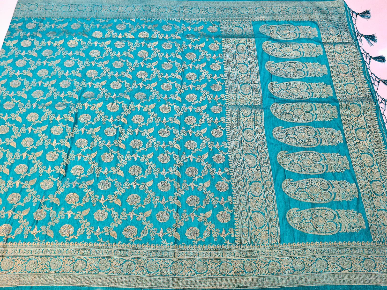 Silk Saree with banarasi weaving with rich pallu and rich blouse.