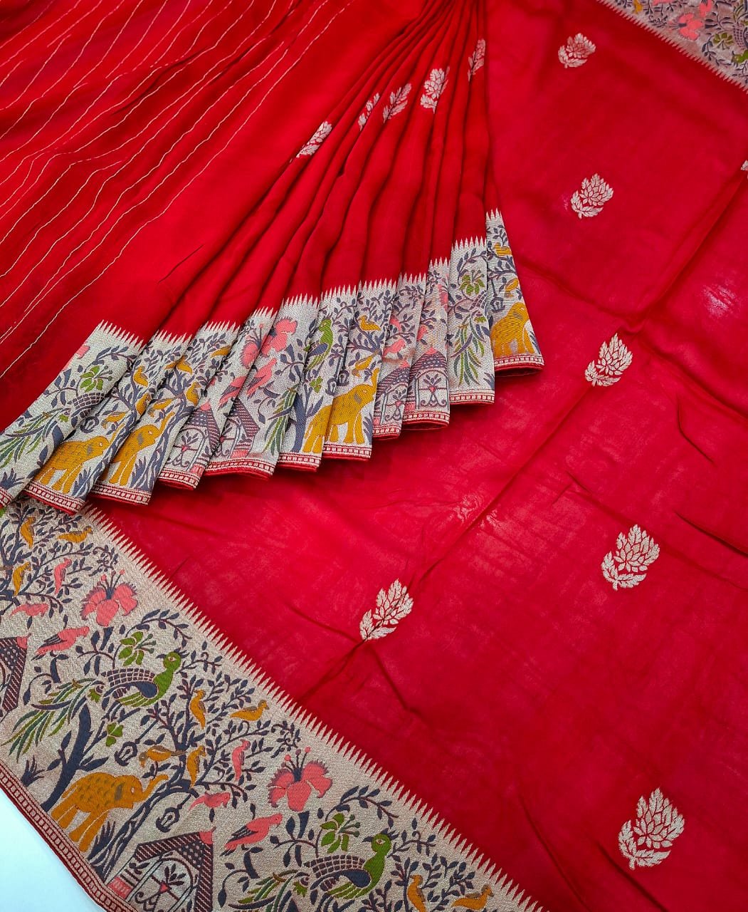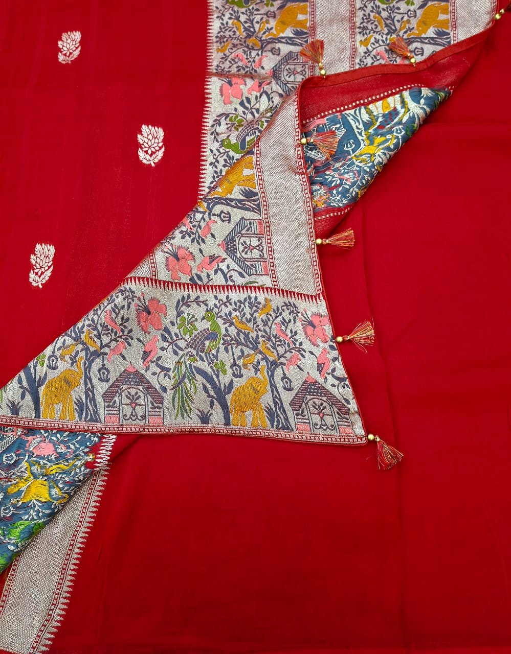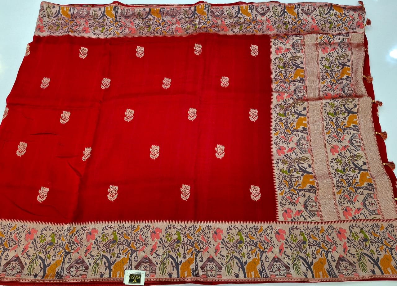 Pure silk fabric designer border resham weaving saree with rich pallu.