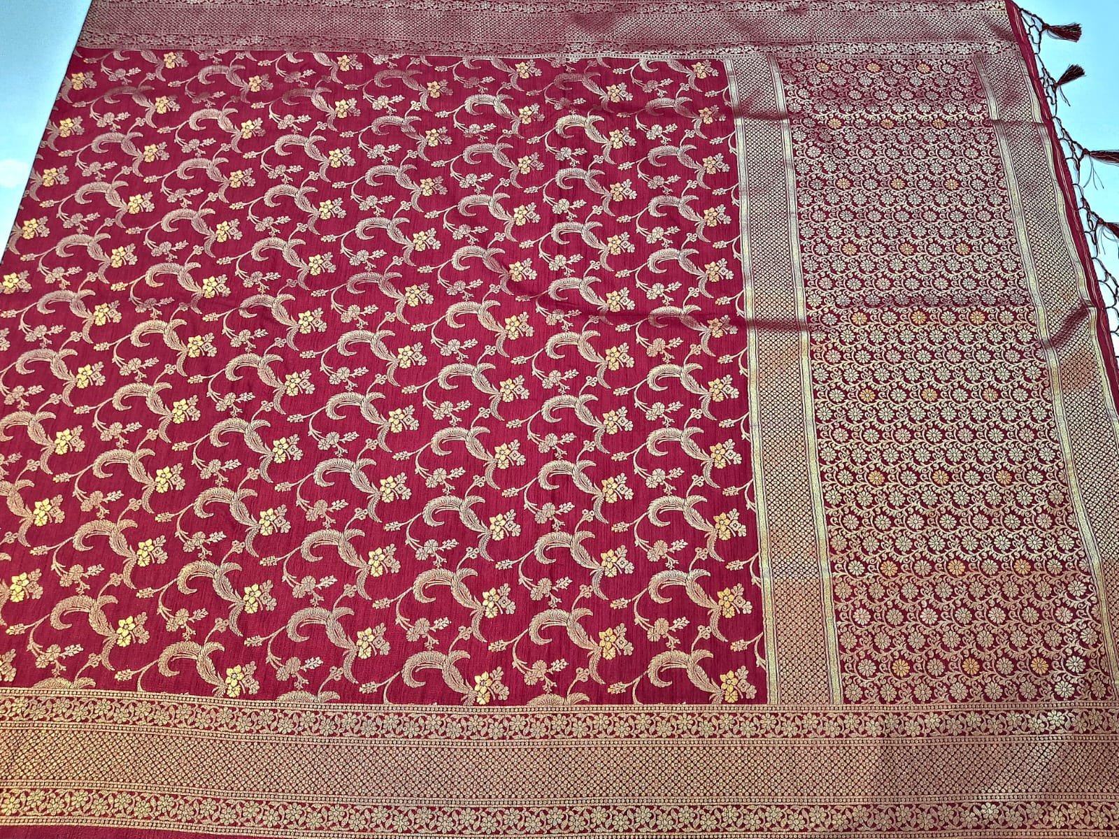 Silk Saree with banarasi weaving pattern wiith rich pallu and plane blouse with border.