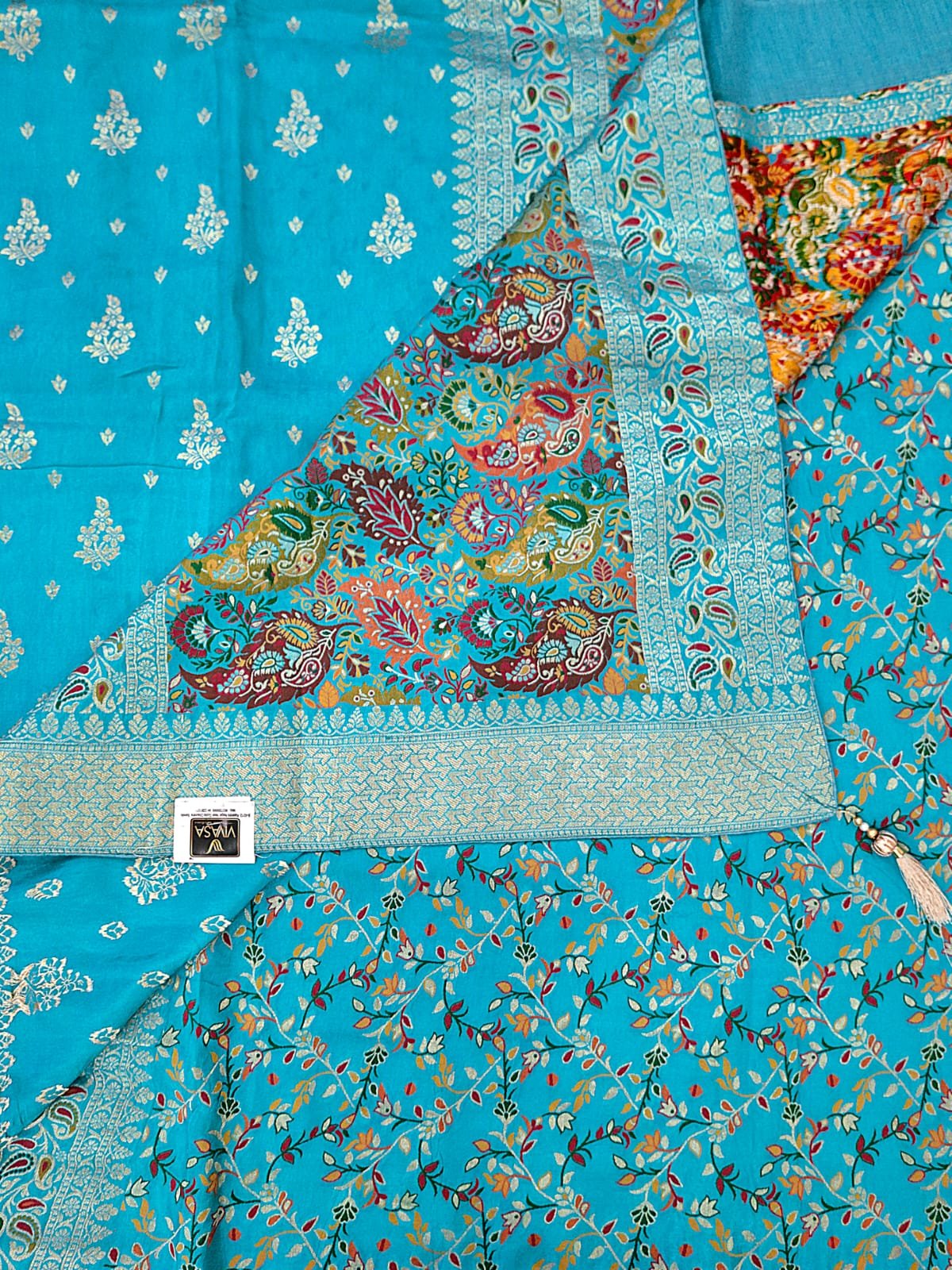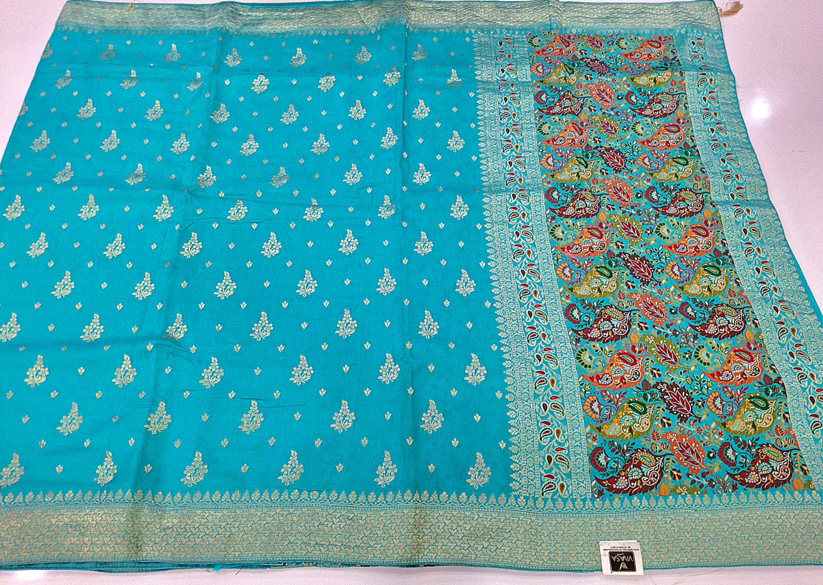 Designer silk fabric zardozi weaving saree with resham weaving pallu and resham weaving blouse.