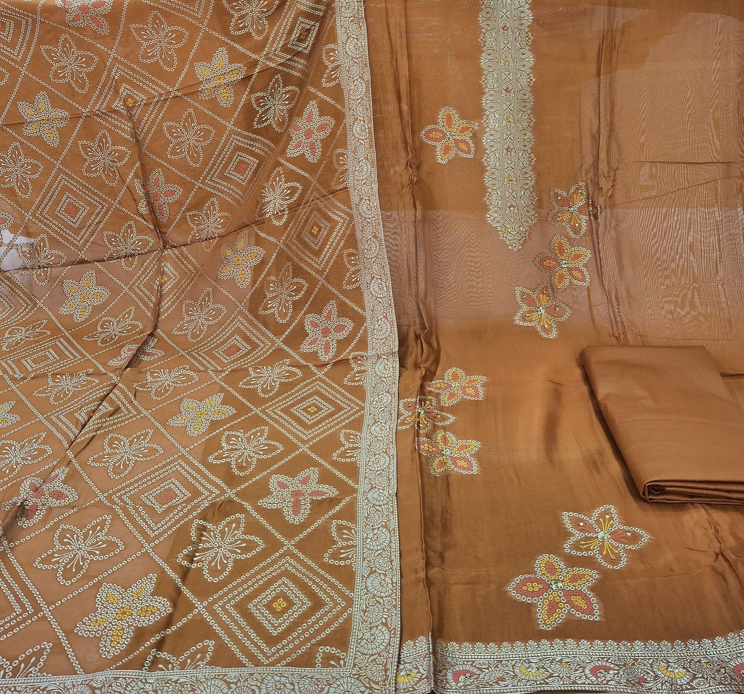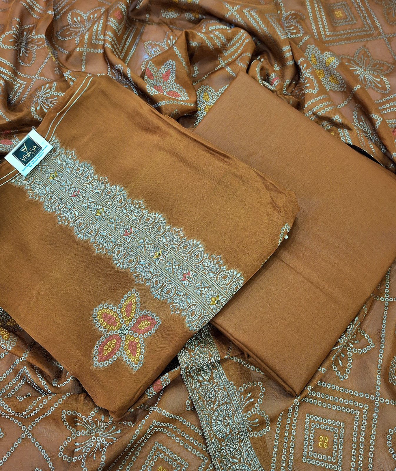 Silk suit with banarasi weaving neck work with plane bottom and banarasi weaving silk dupatta.