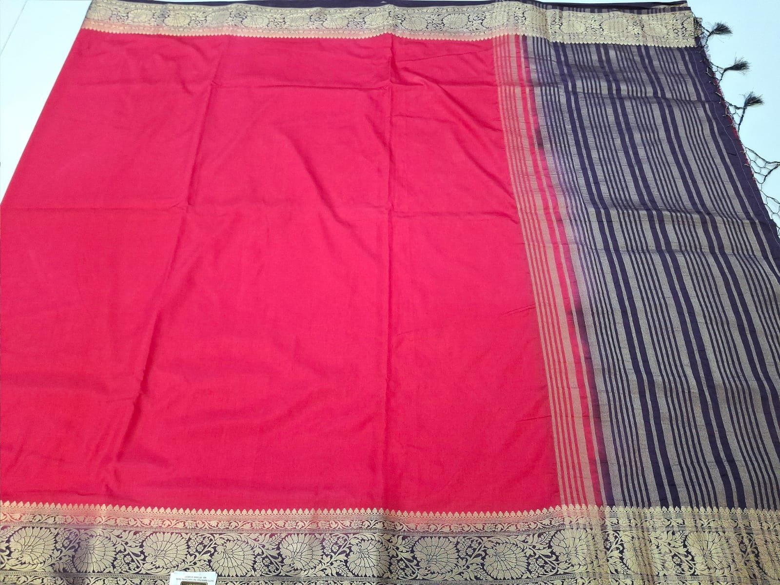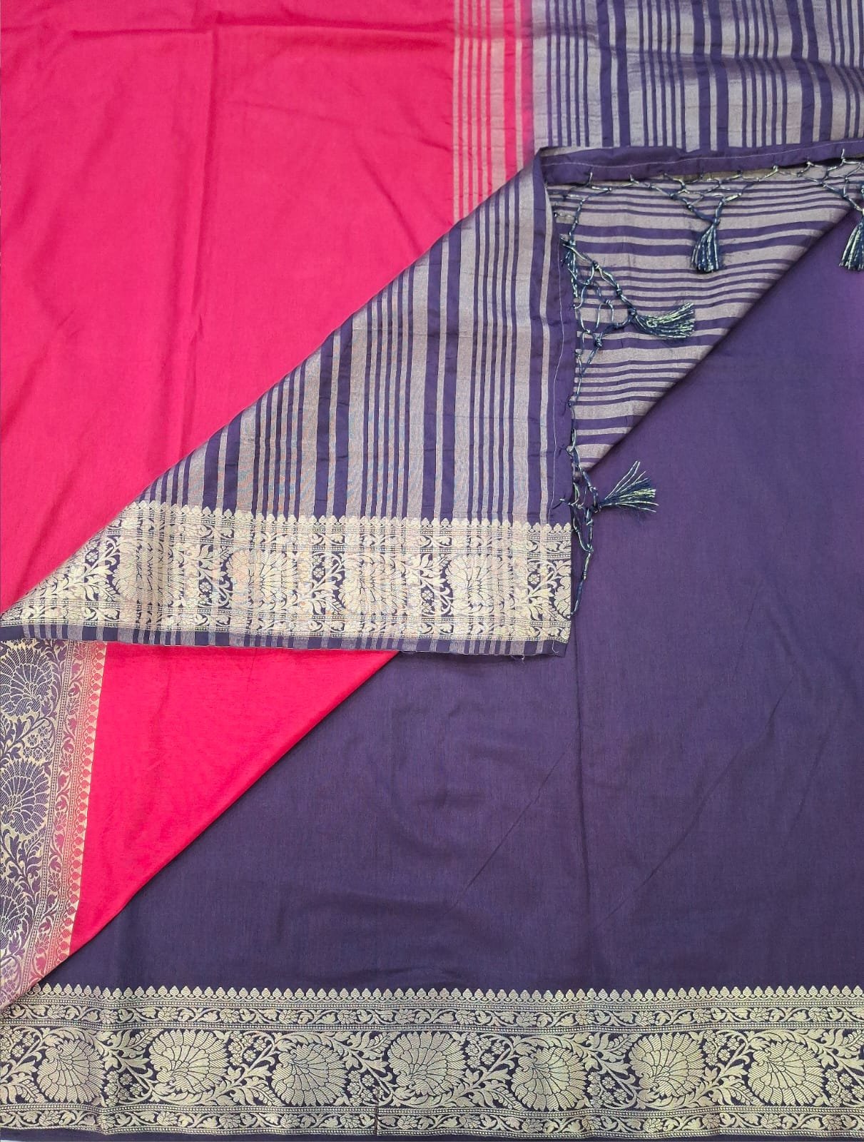 Soft silk fabric plane concept saree with rich border with contrast pallu and contrast blouse.