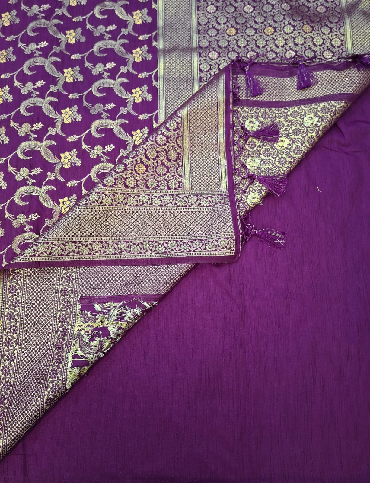 Soft Silk purple shade saree with zari weaving on full saree