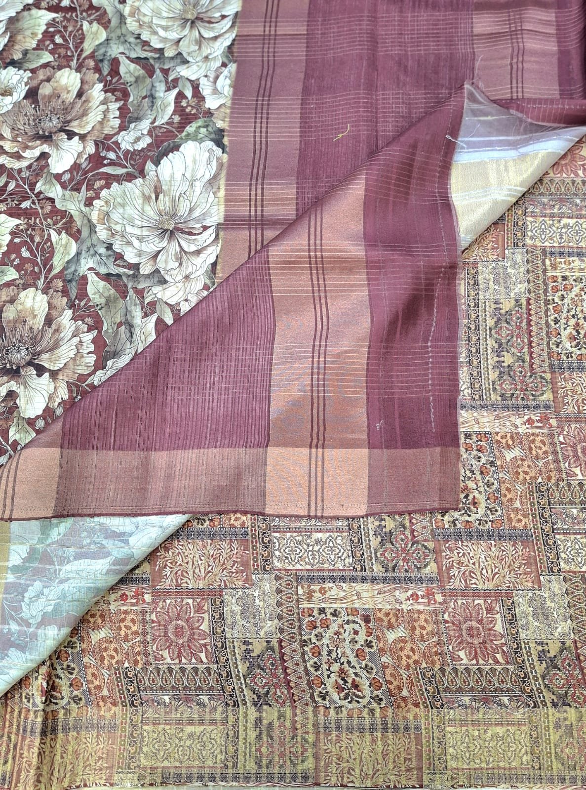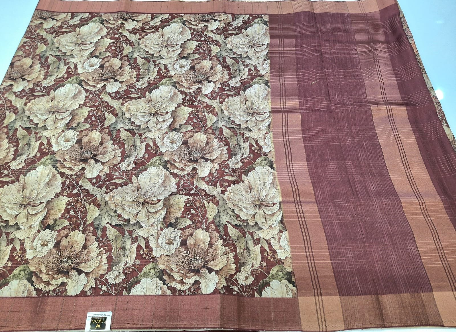Tussar silk fabric designer printed concept saree with designer printed blouse.