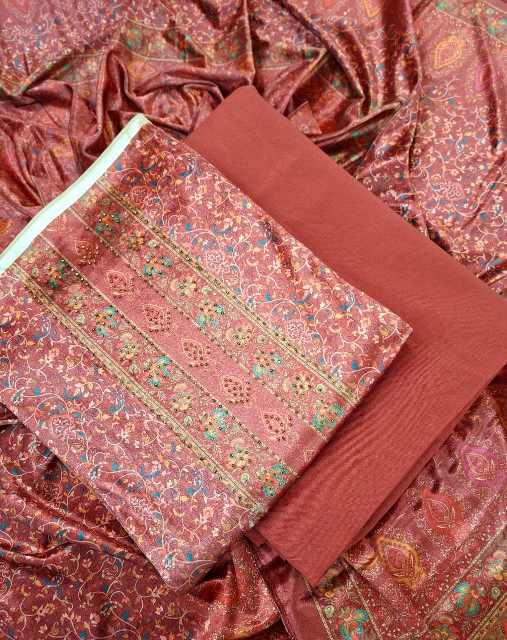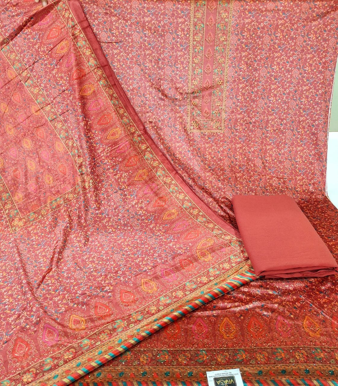 Velvet woollen printed suit with woollen bottom and velvet stall..